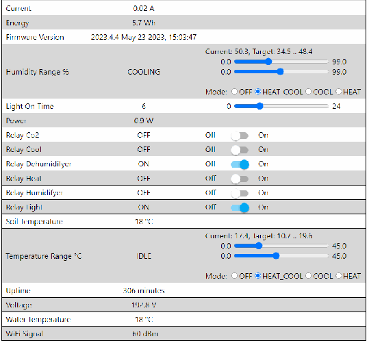 Control for: Humidity (Humidify and dehumidify),Temperature (Heating and Cooling),C02 (C02 up for Plants and C02 down for Mushrooms), Lights ( On Time 0 -24H)